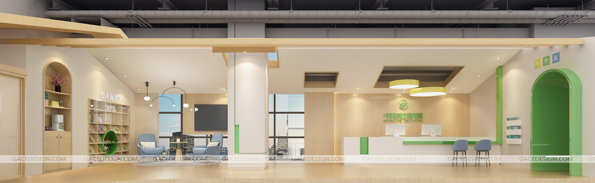 南山書(shū)城培訓(xùn)中心是從成人教育轉(zhuǎn)型向青少年的第一家旗艦店,因書(shū)城培訓(xùn)是一家青少年綜合培訓(xùn)中心,包含的項(xiàng)目門(mén)類(lèi)比較多,在空間營(yíng)造上整個(gè)空間以書(shū)城綠色為主色調(diào),希望打造成一個(gè)開(kāi)放、包容、豐富、樂(lè)趣為特點(diǎn)的一站式青少年成長(zhǎng)中心。