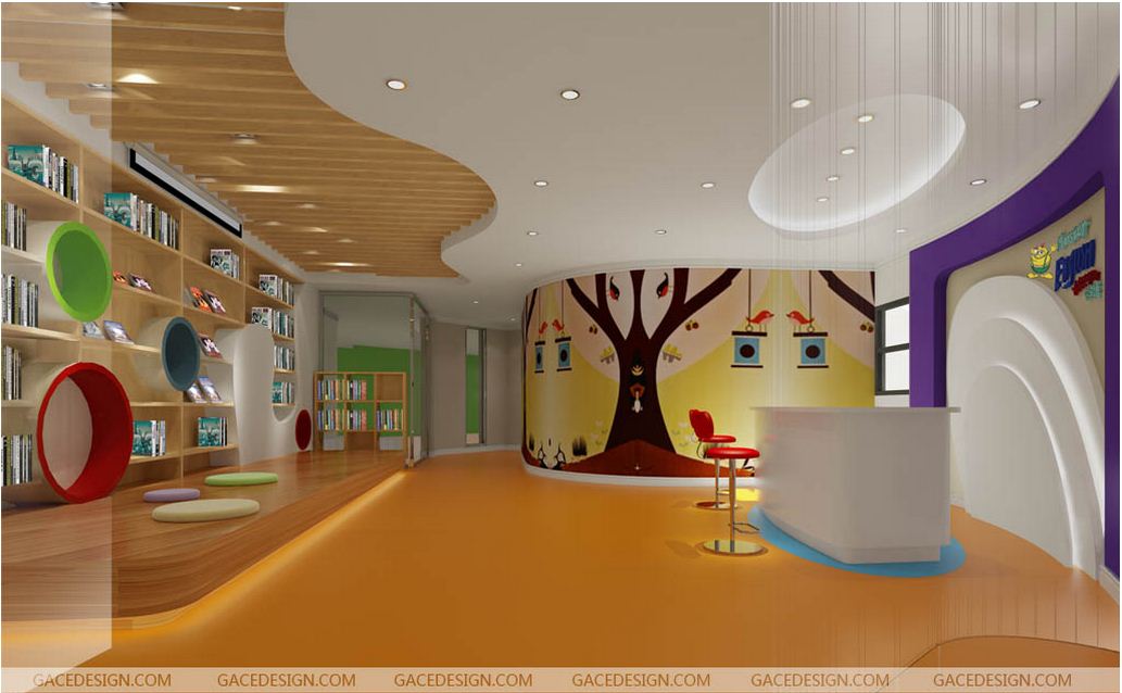 把孩子的空間設(shè)計(jì)得五彩繽紛,不僅適合兒童天真的心理,而且鮮艷的色彩會(huì)激發(fā)起希望與生機(jī)。對(duì)于性格軟弱過(guò)于內(nèi)向的孩子,宜采用對(duì)比強(qiáng)烈的顏色,刺激神經(jīng)的發(fā)育。幼兒園裝修效果圖而對(duì)于性格太暴躁的兒童,淡雅的顏色則有助于塑造健康的心理。